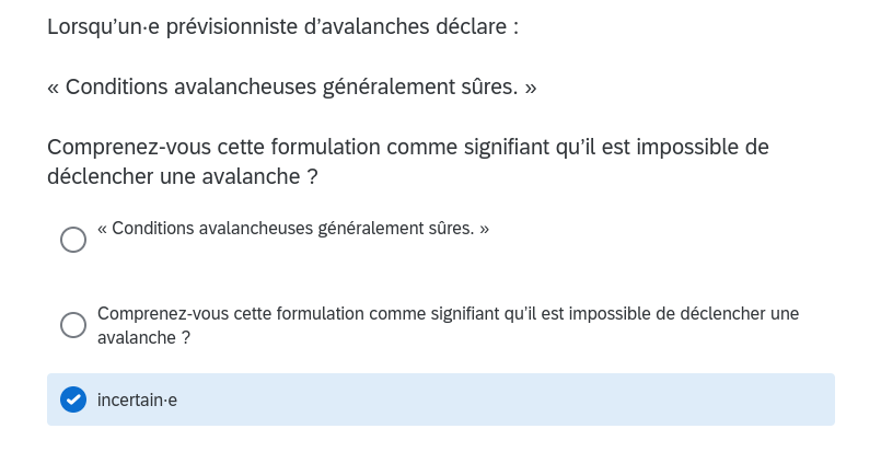 Justement moi, j’ai l’impression qu’il voulait comprendre comment les pratiquants percevaient les nuances d’énoncé des risques?