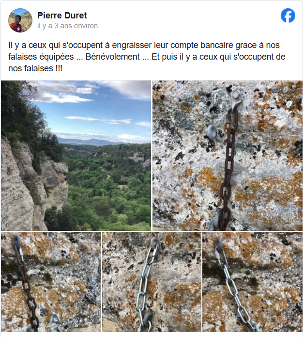 Mais bref ça ne répond pas trop à la question sur les Calanques. La FFME vient de publier un communiqué : Accident à Kalymnos - Corrosion et risques associés - FFME