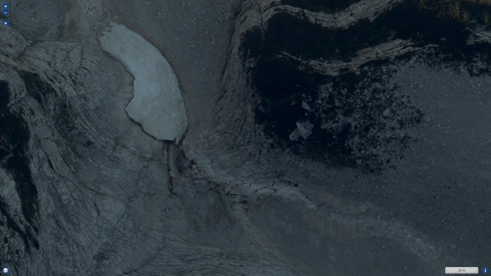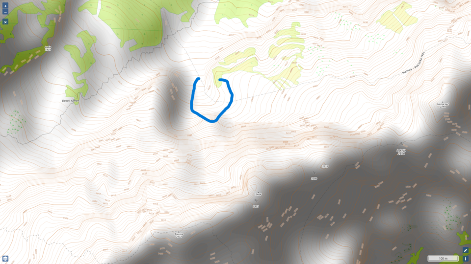 Comme tu vois sur l’image d’en haut, il y a comme un névé. Avant, ce névé partait de plus haut. Du coup, t’as maintenant 15/20 m de 3 (III) exposés, avec en sortie une dalle recouverte de petits cailloux. S’il te faut descendre sans corde, oui, il pourrait y avoir à mourir. Bêtement …