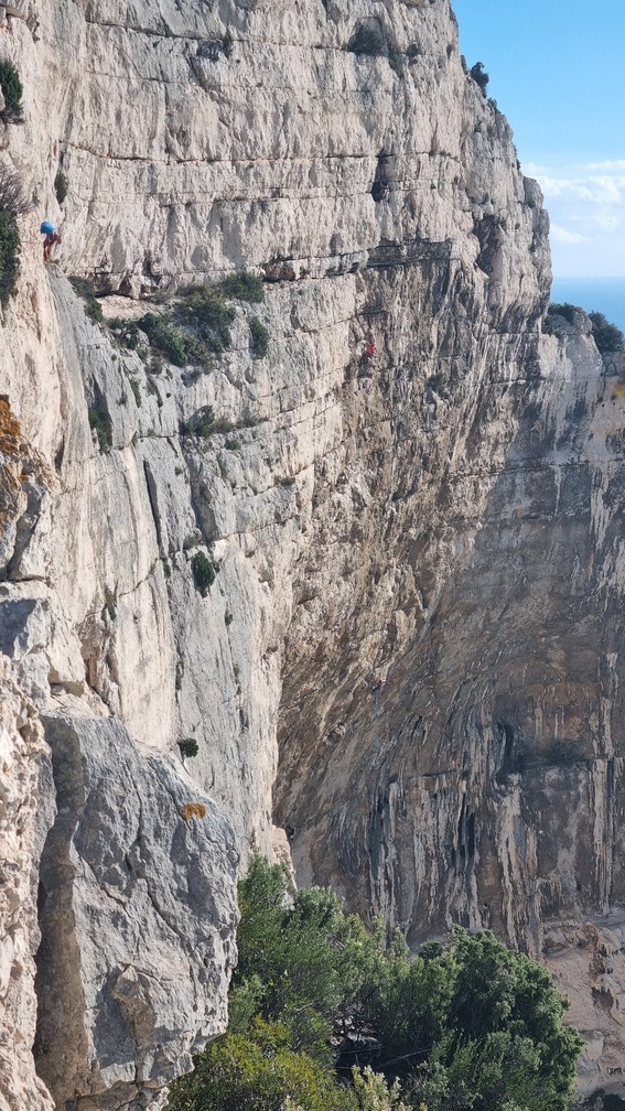 Bravo les gars, je vous ai vu dans la dernière longueur depuis la falaise. J’ai fait une photo d’un peu loin, mais ca fera un souvenir de plus.