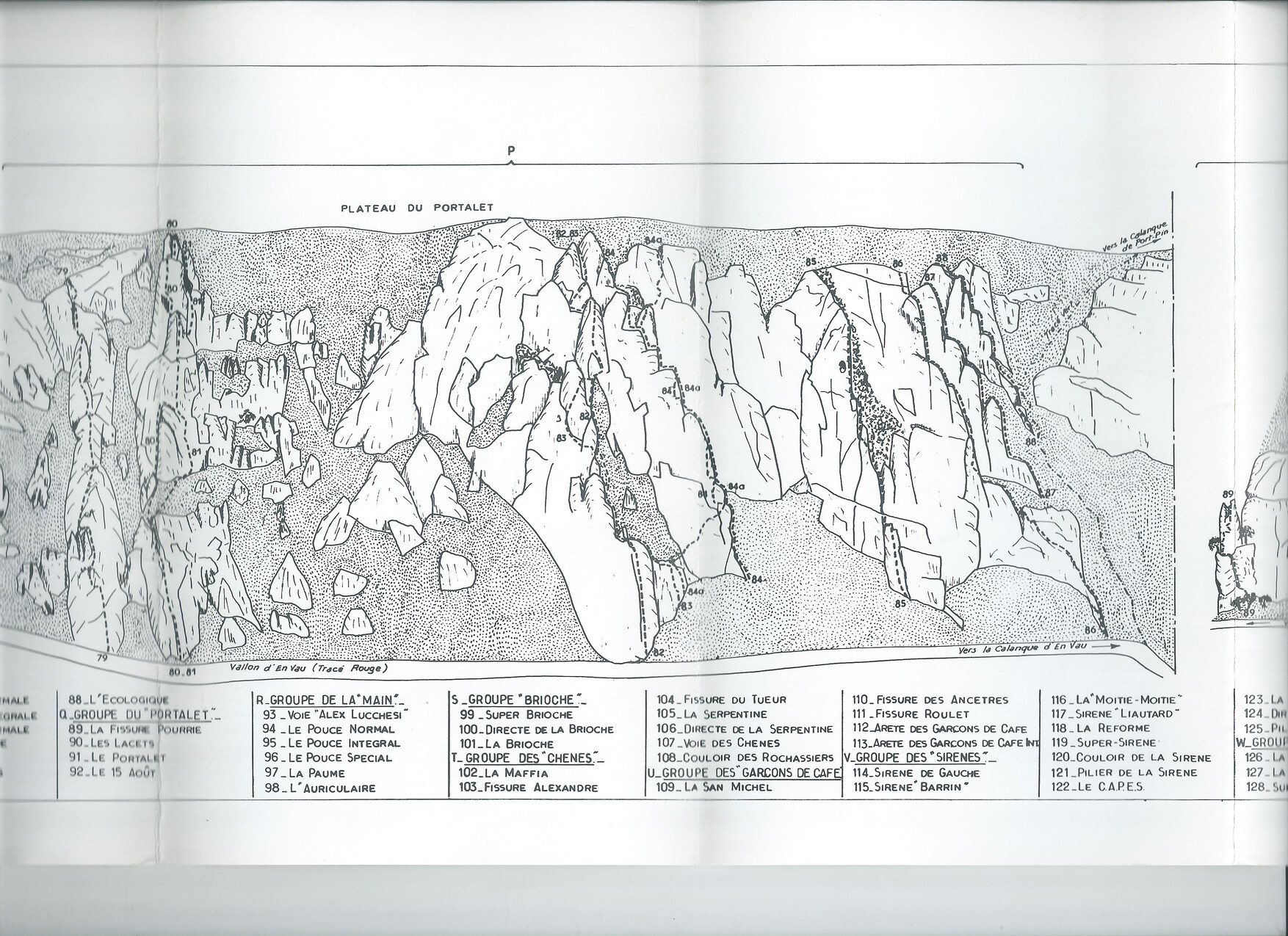 Un groupe de quelques arêtes que Lucchesi nomme le groupe des Croupes. Elle semblent toutes présenter la même physionomie : 80 à 100 m seulement, un départ encombré de végétation, mais des dernières longueurs qui paraissent toutes en beau rocher depuis le plateau.