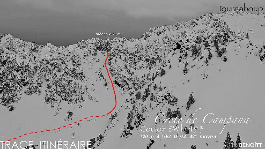 Crête de Campana - Couloir 49.3 - Trace Itinéraire