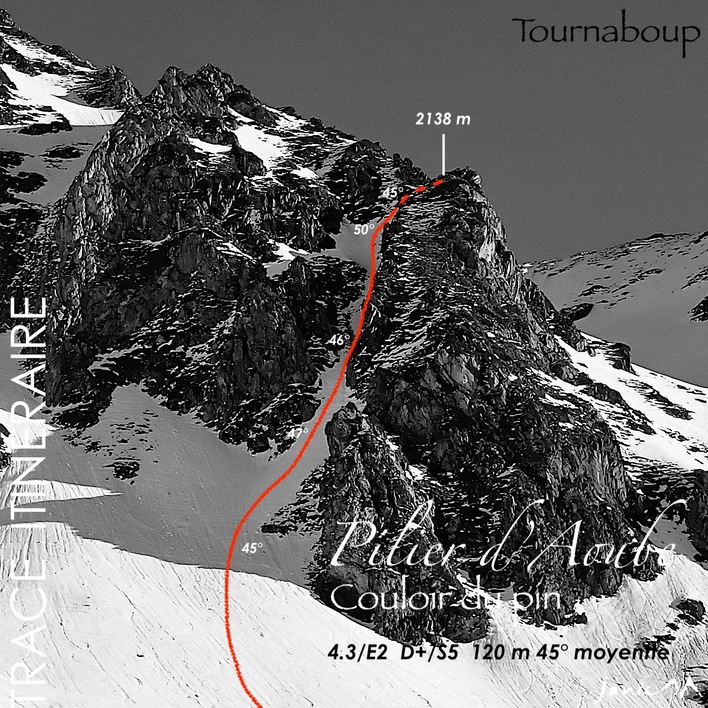 Pilier d'Aoube - Couloir du Pin - Trace Itinéraire