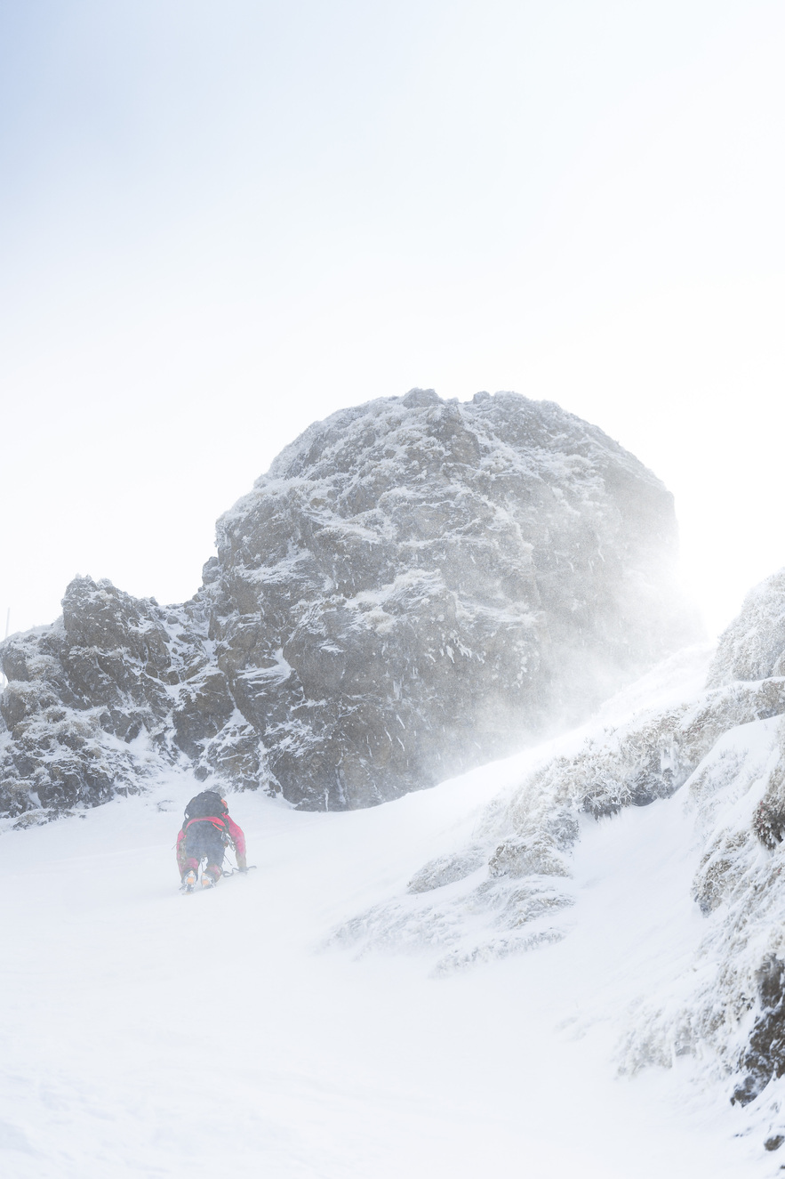 Hydra a été un premier de cordée particulièrement prudent et serein, ce qui était idéal pour une première expérience dans ce type de terrain. Malgré les conditions bien hivernales et la neige fraîche, l’ambiance était incroyable, presque austère par moments, et c’est exactement ce qui fait le charme de ces itinéraires.