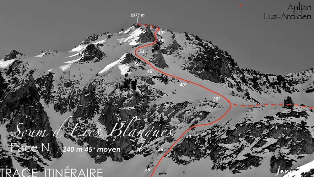 Soum d'Eres Blanques - Face N - Trace Itinéraire