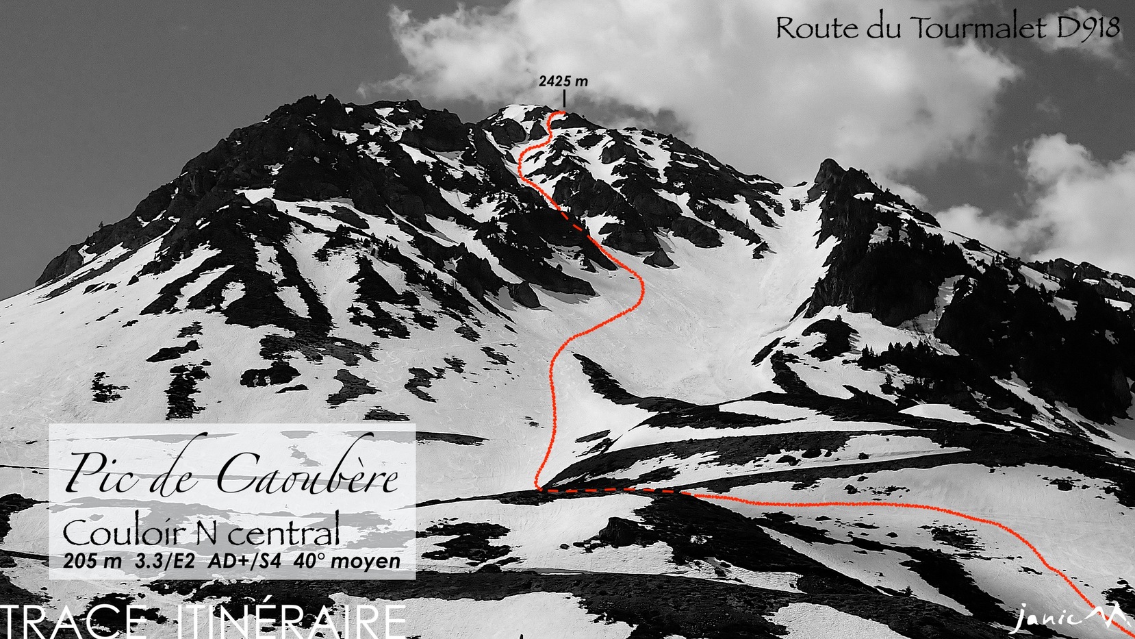 Pic de Caoubère - Couloir N central - Trace Itinéraire