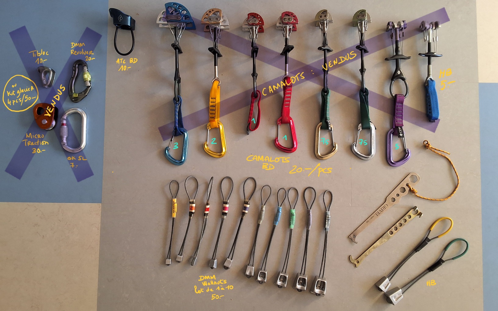 Pour info, Il reste les wallnuts DMM + coinceurs HB et le descendeur Black diamond ATC.