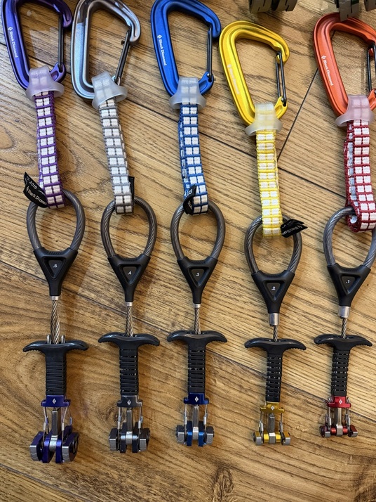 Vends 10 camalots black diamond équipes de leurs mousquetons miniwire de même couleurs