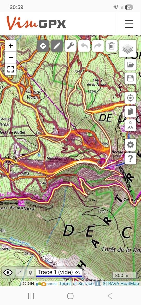 "Sauf " que le fond de carte Strava est OSM ( OpenStreetMap ), et j’aime pas trop. Je suis adepte ( et surtout habitué ) du fond de carte IGN Classique, depuis 40 ans ( Appris avec des stages CAF alors… ).