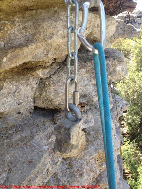 … et si je dois faire un rappel sur un seul point … je porte un jugement, si visiblement il est dans de la terre solidifiée je double … voire je triple! Il y a bien longtemps j’ai fait une retraite dans l’Olan où j’ai même détaché mon compagnon du relais de rappel (pourtant sur 4 points) en lui disant que si il s’arrachait, il resterait sur la vie à attendre l’hélico!