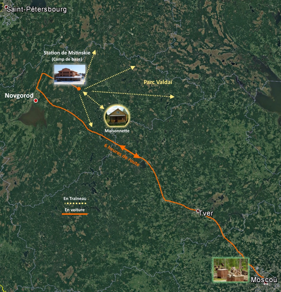 Donc Mi-février 2017 je pars à nouveau pour un raid en traîneau à chiens dans un lieu magnifique et préservé comme je l’ai fait précédemment en Laponie Suédoise et en Norvège. Cette fois, je vais mettre le cap sur le parc naturel de Valdaï dans la région de Novgorod en Russie.