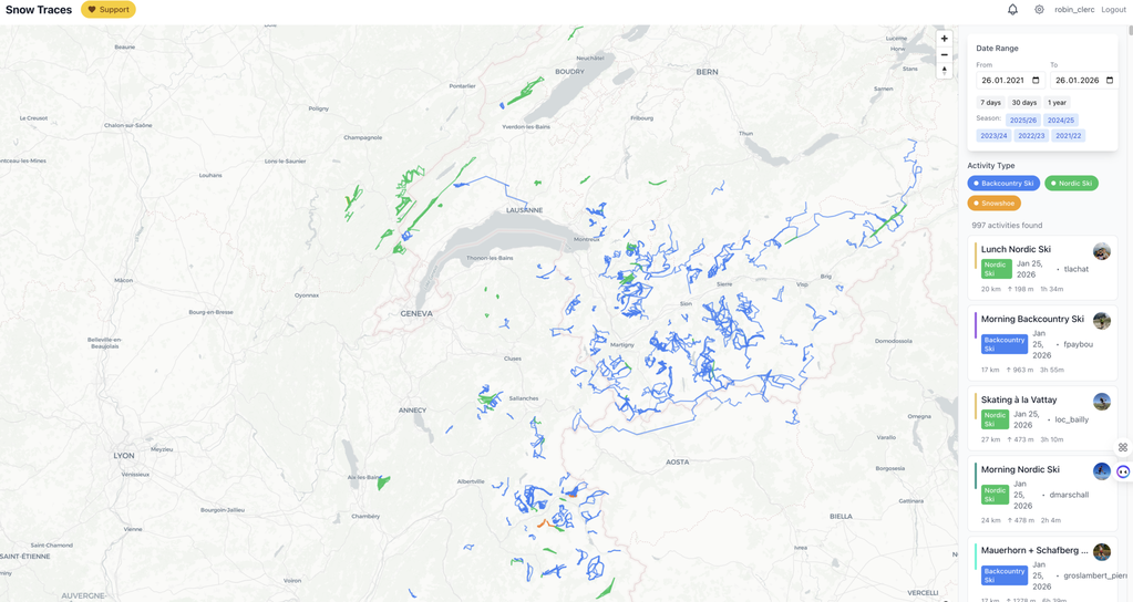 Si vous voulez, vous pouvez jeter un œil à https://snow-trace.com : c’est une carte qui regroupe automatiquement les sorties récentes (fond / rando / raquettes) pour voir où ça skie vraiment en ce moment et trouver des infos à jour (des gens qui se sont inscrits).