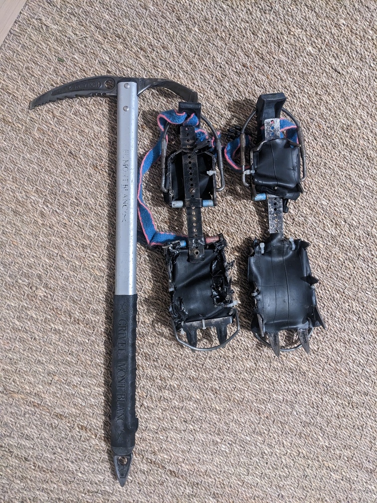 Lorsque j’étais étudiant j’avais récupéré ici même contre un euro symbolique ce piolet grivel mont blanc et cette paire de crampons tout automatique (attention antibottes bricolés au fonctionnement médiocre). Je souhaite faire de même et le donner contre un euro symbolique à un étudiant ou quelqu’un n’ayant pas les moyens d’acheter du matériel.