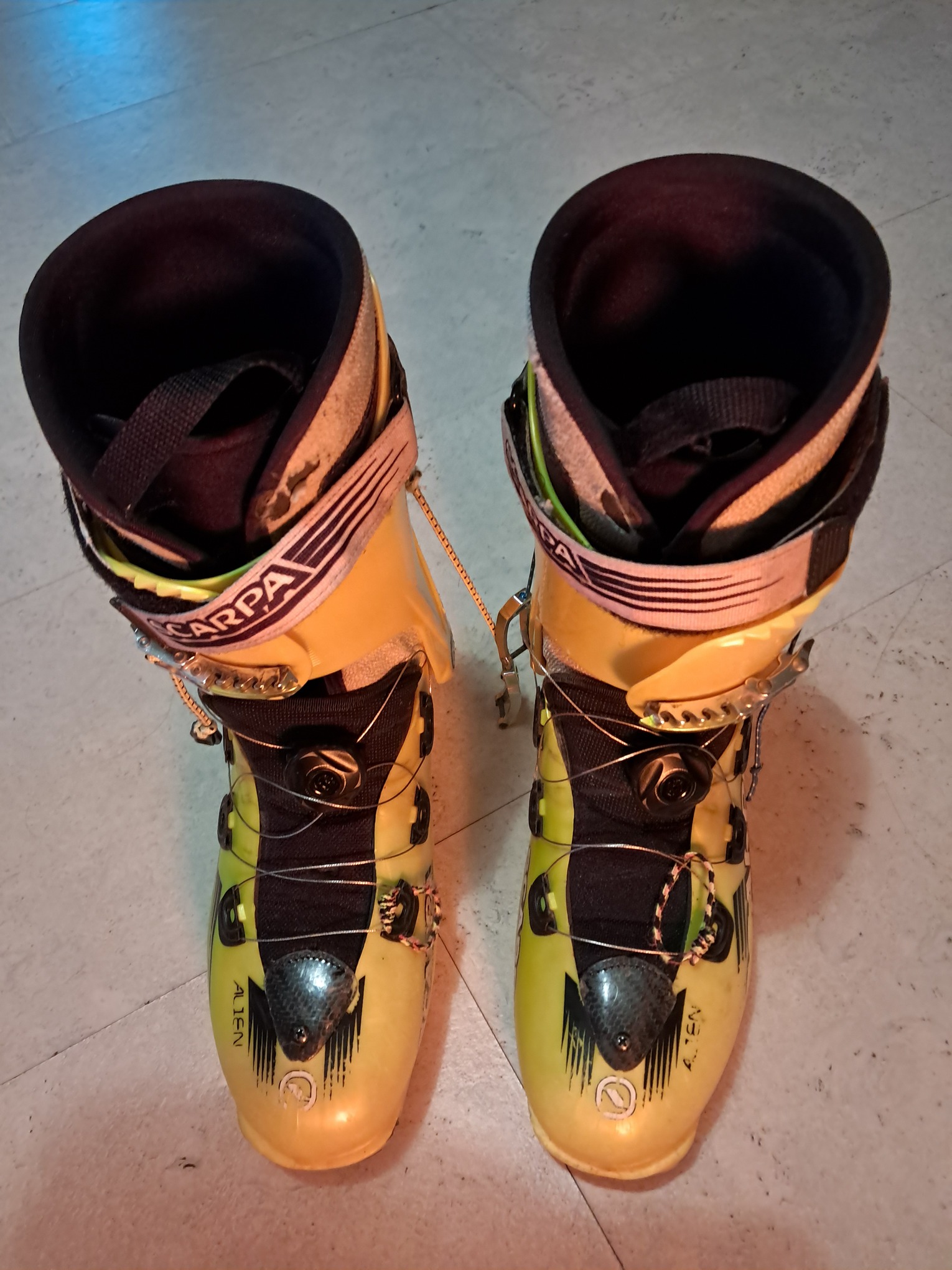 Je donne mes chaussures de ski de randonnée Scarpa Alien de 2012 en taille 28.