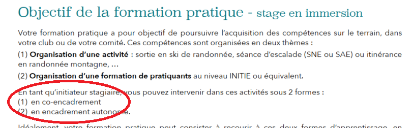 Extrait du livret de formation pratique FFCAM. L’encadrement autonome y est possible, il n’y a pas de doutes.