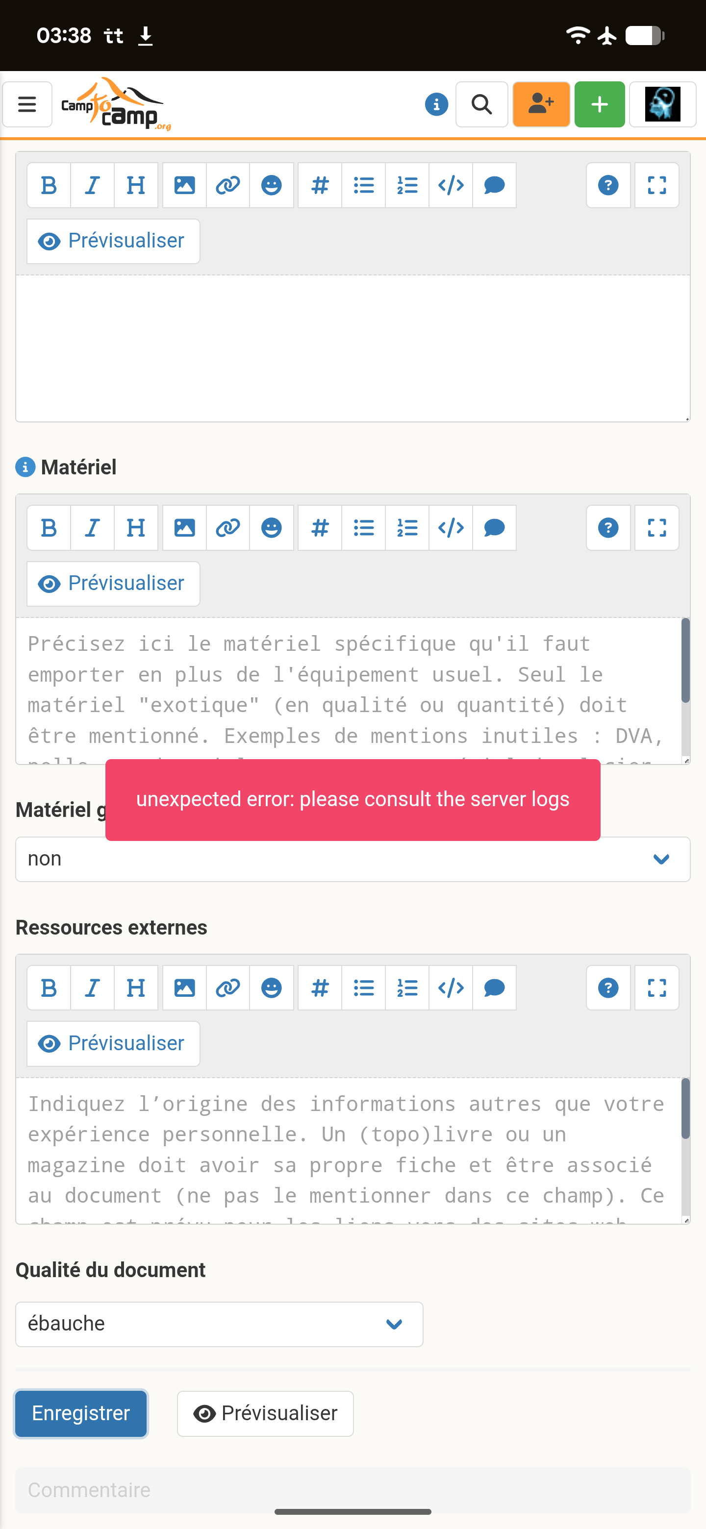 Parfois le bouton « enregistrer » ne fait rien (on reste sur le formulaireet pas de message d’erreur), il suffit de cliquer de nouveau sur le bouton.