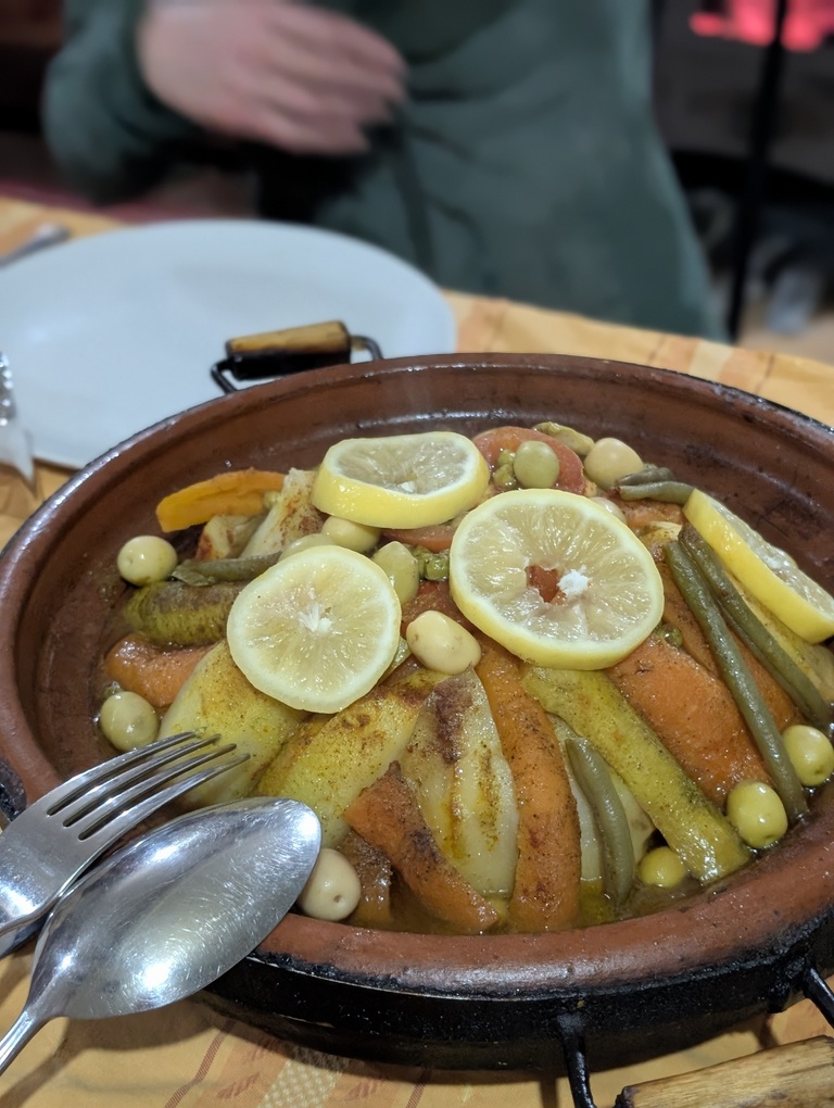 On a échangé par WhatsApp avant notre arrivée ( je suis ici en famille avec femme et enfants), du coup le tajine a eu le temps de bien mijoté, on s’est régalé.