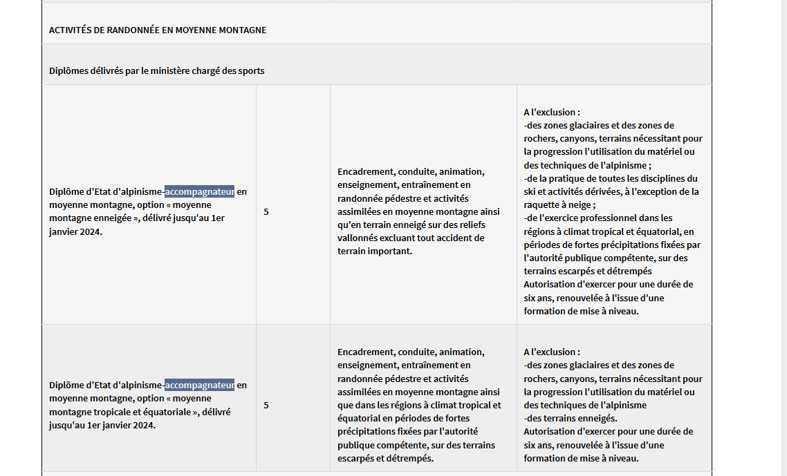 [Modéré : propos tendant à présenter une pratique à titre onéreux illicite comme dénuée de danger pour la clientèle] Ils n’ont peut-être pas payé des milliers d’euros, ni consacré cinq ans de leur vie à se faire une culture et un compétence montagnarde dans le cadre du DE AMM, mais ils l’ont acquise par ailleurs (pratique personnelle, acquisition de compétences en club, pratique et parfois encadrement bénévole, etc.)