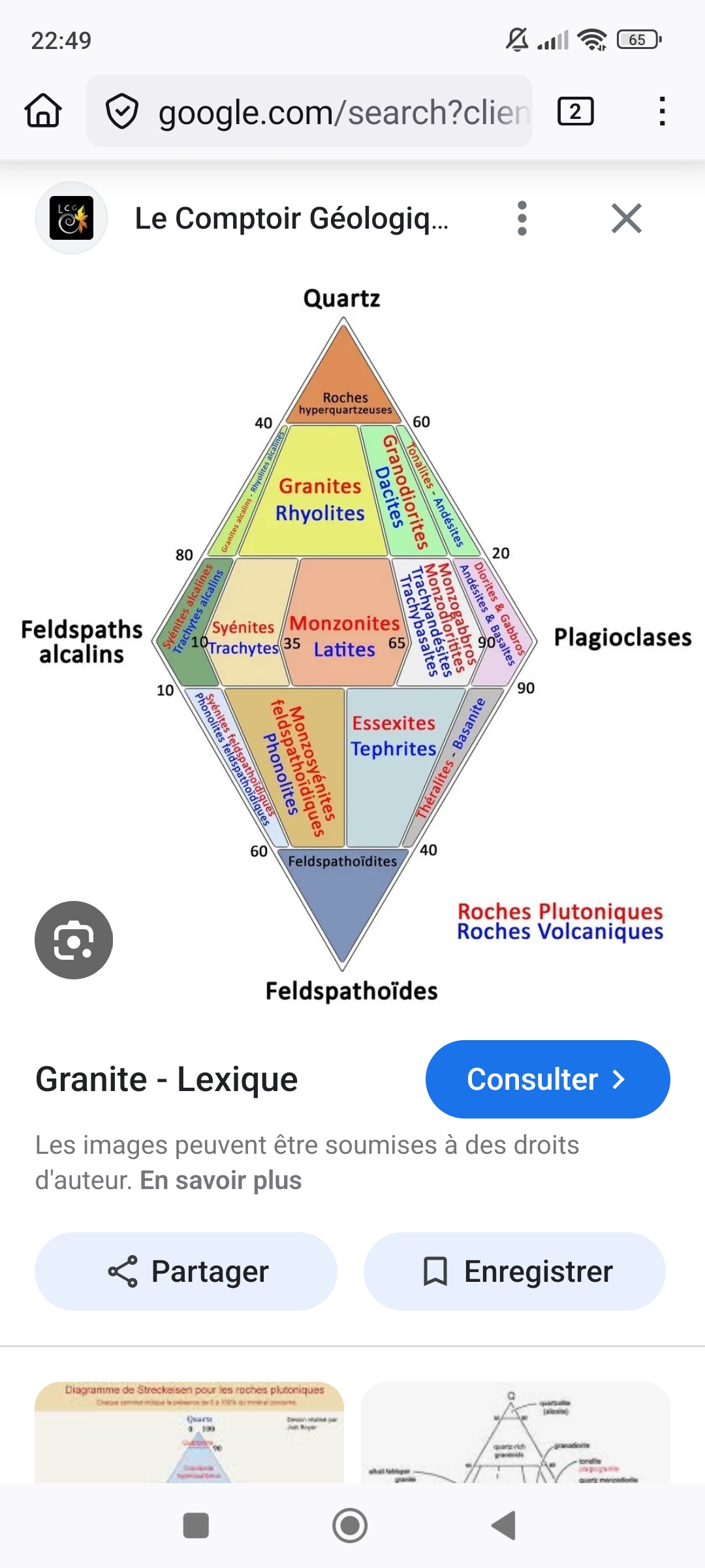 Précision : La classification des roches magmatiques et plutoniques ( granite basaltes etc …) est notamment déterminée par leur composition minéralogique, en général les 3 principaux minéraux ( par ex Quartz, Feldspaths Alcalins et Feldspaths Plagioclase pour granit ).