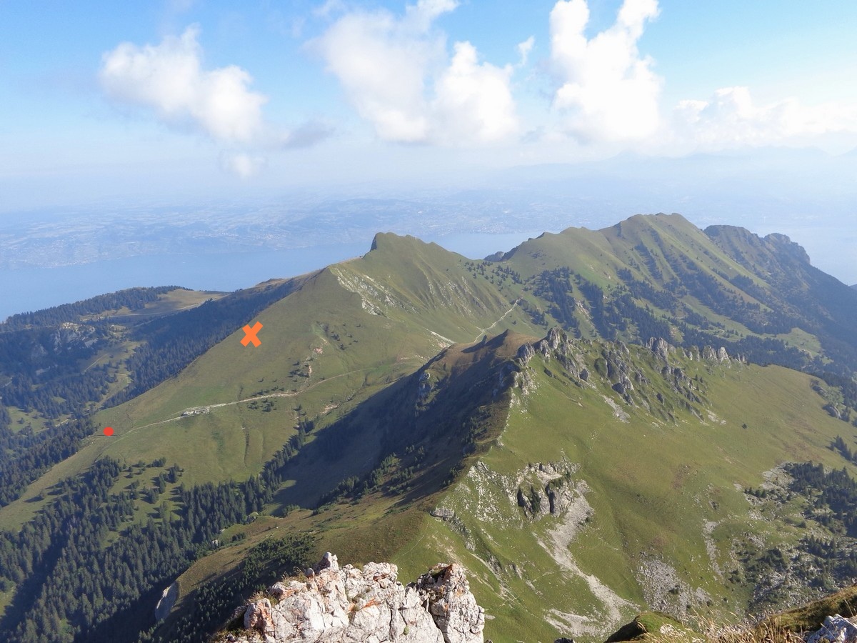 Ta croix rouge, se situe à ce niveau, hors cadre, un peu plus haut que les chalets de la Neuva, à droite, hors cadre sur la photo…
