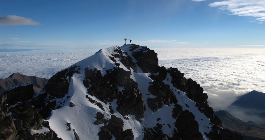 je peux me tromper mais la nebbia en bas + la croix au sommet, ça ressemble bien. Je n’ai pas de photo du sommet sous cet angle. Ça doit être pris de la pointe Nizza. J’ai cherché dans les topos des frères Vallot : rien trouvé !