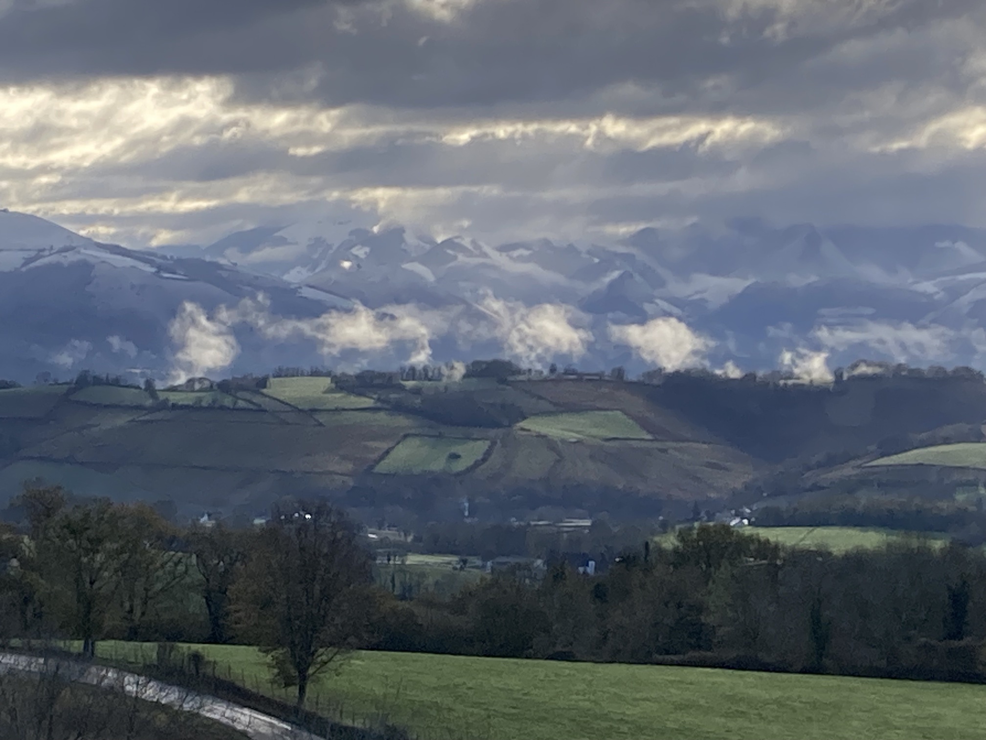 Avec le restau à 392m et le col à 507m. Il sépare la Basse-Navarre et la Soule, où on prononce les « u » « ü ». On voit la haute Soule, le secteur du Pic d’Anie et Béarn enneigés.