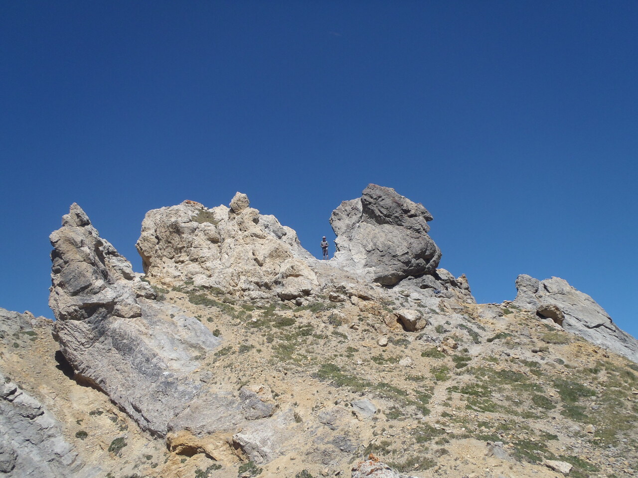 Le sommet serait sur la pointe à gauche du personnage d’après mon estimation sur place en haut mais ça se joue à rien avec la pointe de droite