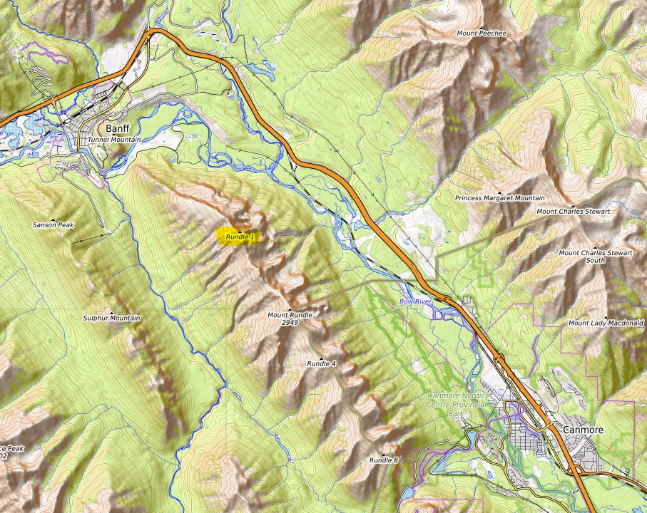 Un petit tour dans l’Alberta m’a permis de trouver le nom de ce sommet, le Mount Rundle 1 dont le sommet domine Banff au nord.