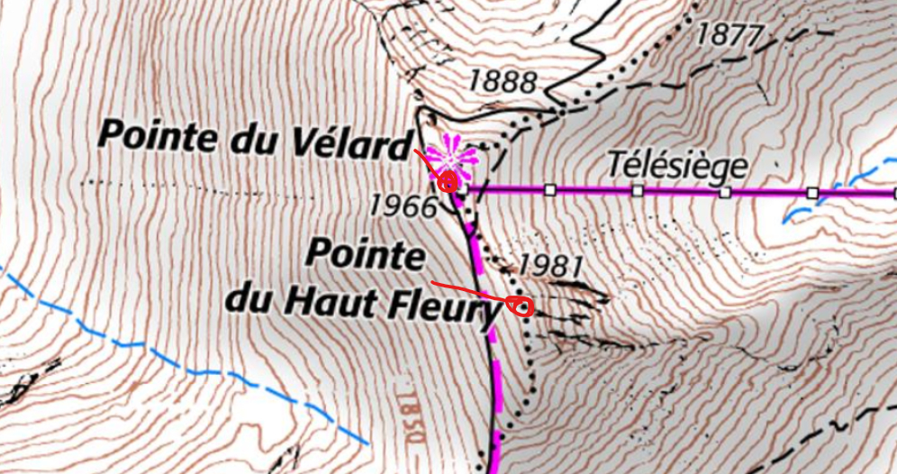 Le télésiège s’appelle Haut Fleury, mais sur la carte topo il arrive à la Pointe du Vélard.