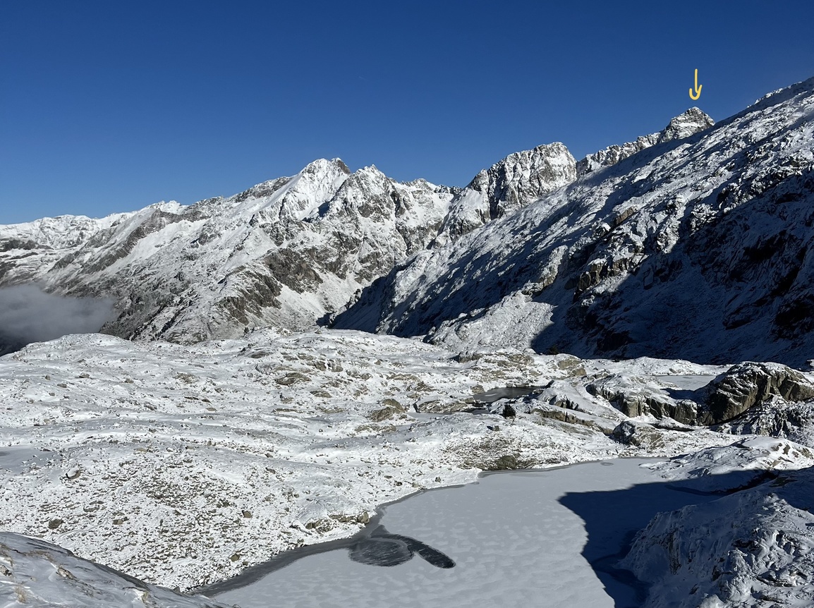 Regardez pas dans le lac, mais sous la flèche jaune ! Quel est ce sommet ?