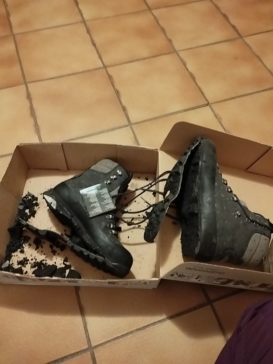 ? Je veux bien reconnaître que c’est un âge vénérable pour une paire de chaussures, mais elles paraissaient encore en forme en termes de thermocollage, de nubuck et de crantage. On était tellement énervées d’être montées pour rien depuis La Chapelle qu’elles ont fini dans le premier container venu.