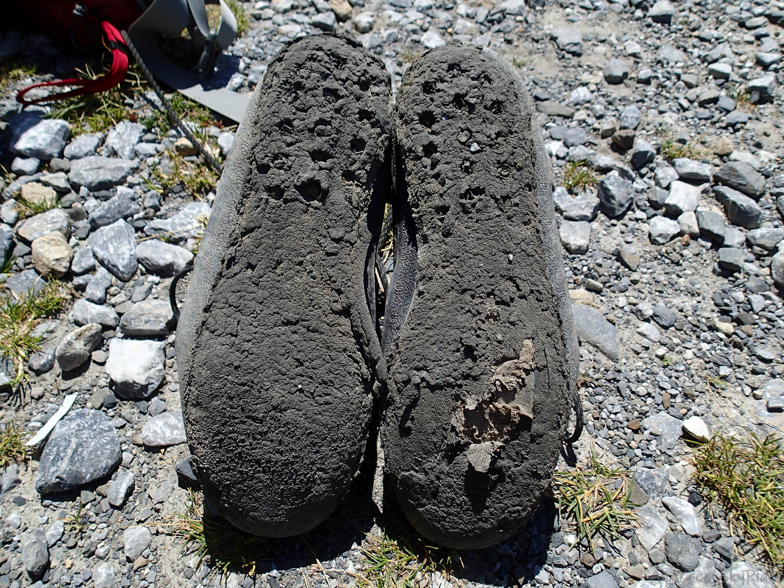 Quand on avait randonné à Ténérife, sur les pentes du Teide, on avait trouvé plusieurs semelles extérieures de chaussures, abandonnées ça et là sur le sentier. La grosse accroche sur les pierres volcaniques avait dû bien aider à l’arrachage ! Ça nous avait motivés à descendre avec précaution