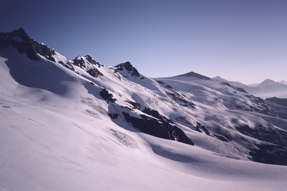 Je dirais peut-être dôme de l’Arpont et Chasseforêt, depuis le glacier de la Mahure, ou face Nord de la Dent Parrachée?