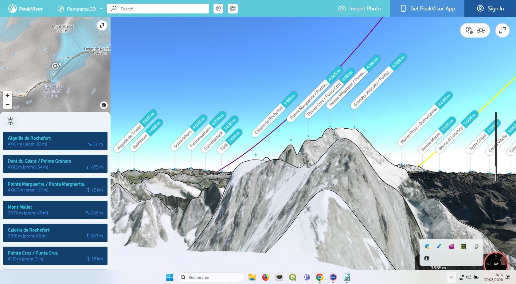 Bon dans le détail on est sans doute un poil en-dessous de l’aiguille de rochefort IGN en se dirigeant vers les Jorasses.