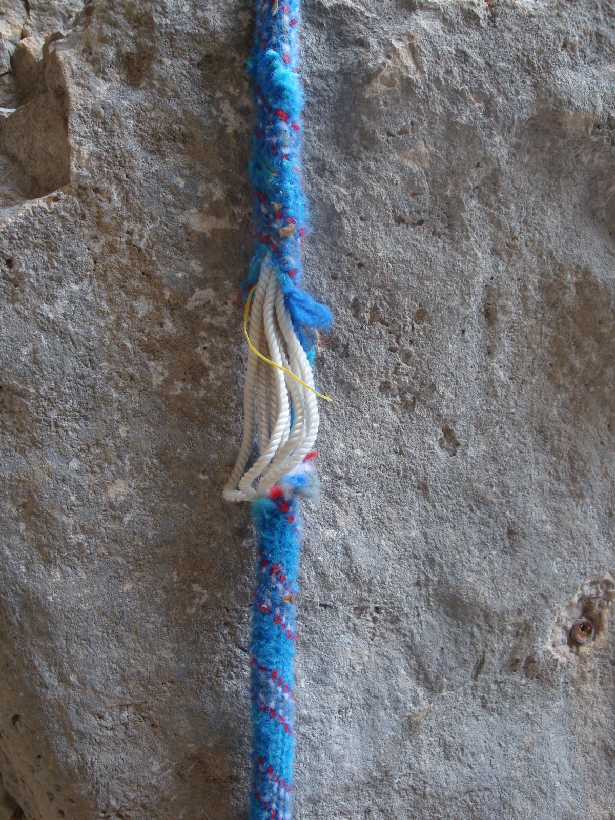 Moi j’imbibe le milieu de corde dans un petit bac de Javel en berlingot.