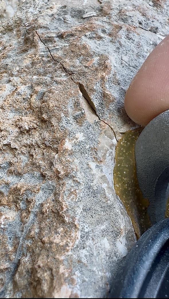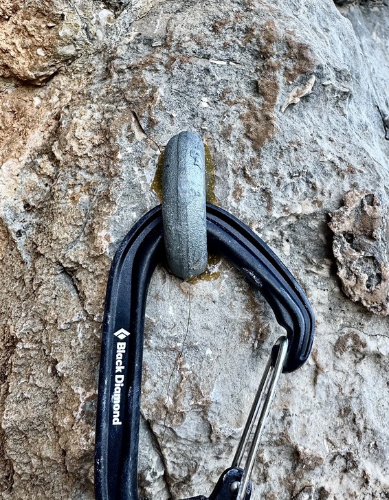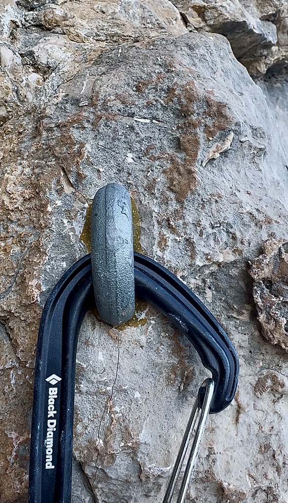 Là, il semble bien que la pose du goujon ait fissuré la roche (pas forcément sur le coup, mais en ts cas après qu’il ait été posé.