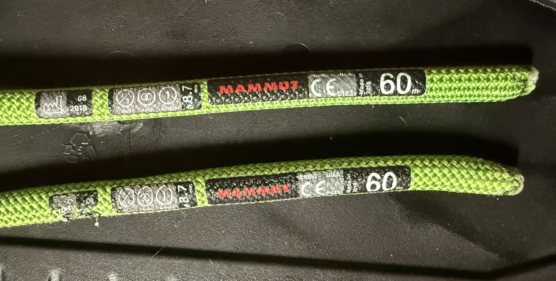 Dans mon cas, les corde concernée (modèle CORDE À DOUBLE D’ESCALADE ET D’ALPINISME - RAPPEL ICE 7.5 MM × 60 M BLEU + JAUNE ) ont été utilisée une seule fois, après son achat. Pourtant, comme vous avez pu le constater, l’un des deux brins était déjà nettement plus court, au point de rendre un rappel de 60m très dangereux. C’est la première fois que j’achète des cordes Simond, avec plus de 15 ans d’expérience j’ai jamais pu constater ce genre de chose avec d’autres marques.