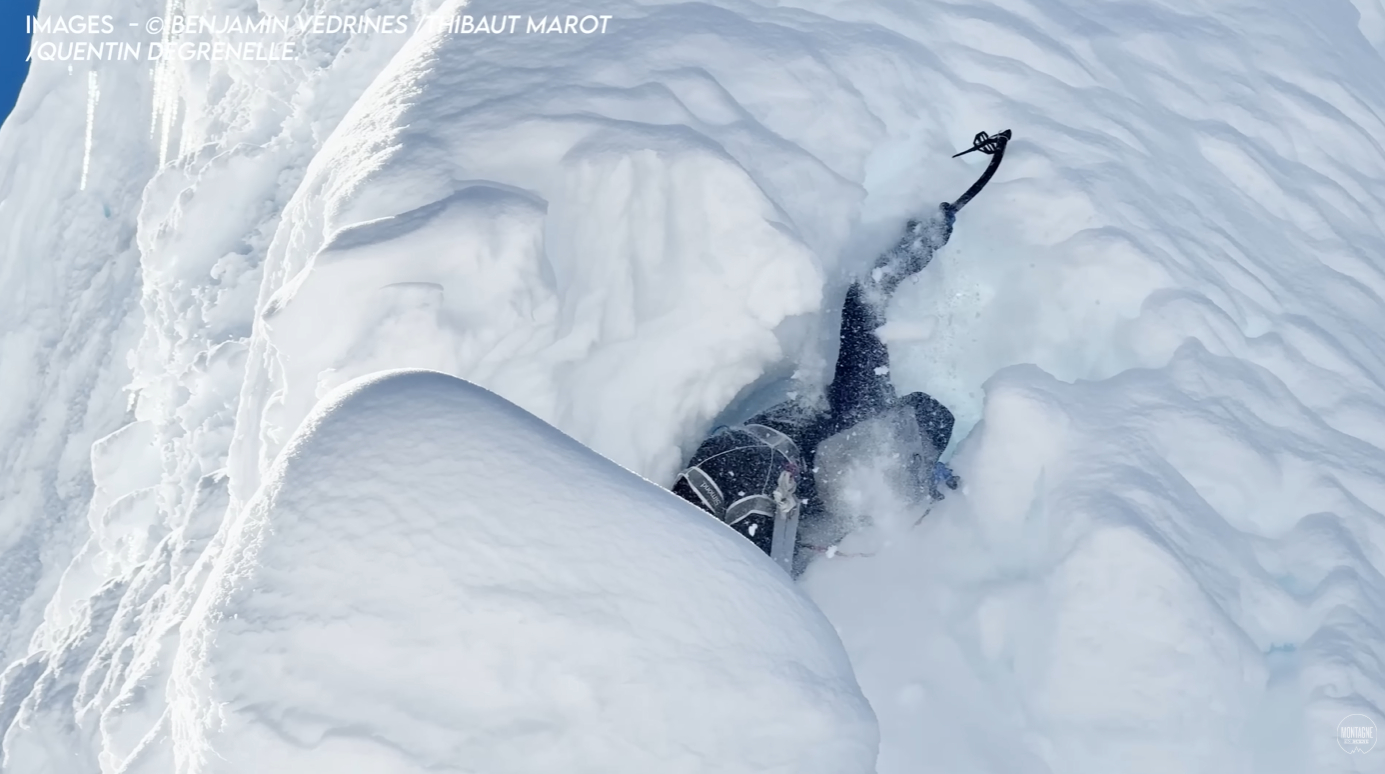 Gagner un peu en « portance » ,enfin je pense !Il mets deja arrivé de sortir la pelle (comme une ancre) pour une main et le piolet pour l’autre .