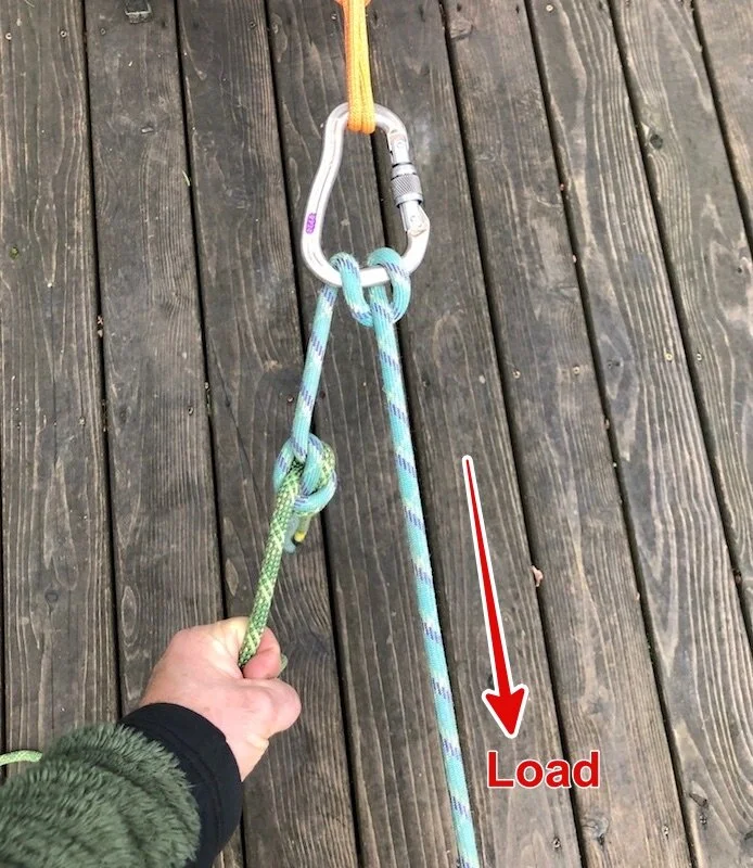 ah, tu fais des noeuds et anneaux comme si tu t’encordais à double alors.