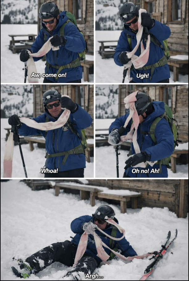 Ca n’est pas la perfection absolue, ça arrive dans certaines conditions spécifiques et rares (pour moi) elles ne collent pas du premier coup ( grand froid + fartage tout frais + montée sanglier dans la poudre) mais je les remet en moins de 5mn et elles ne m’ont jamais une seule fois laissé en carafe comme je le vois parfois dans les groupes que j’emmène avec des peaux à colle.