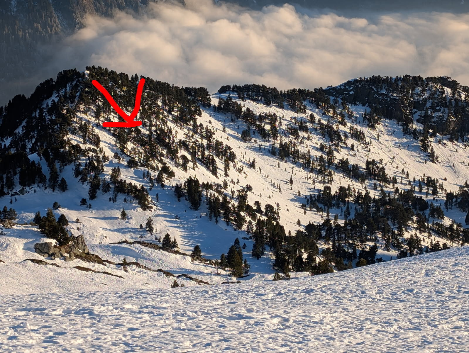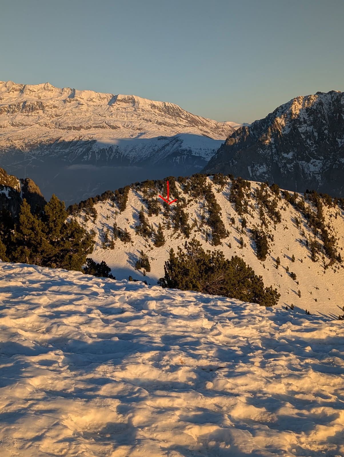 On a essayé de chercher depuis le haut puis le bas. Mais on avait dans l’ensemble peu de temps avec un groupe d’ados à gérer. Le versant est boisé, assez raide, mais pas très grand, environ 100m de dénivelé. Point d’envol: 45°07′00.16″ N 05°54′22.51″ E