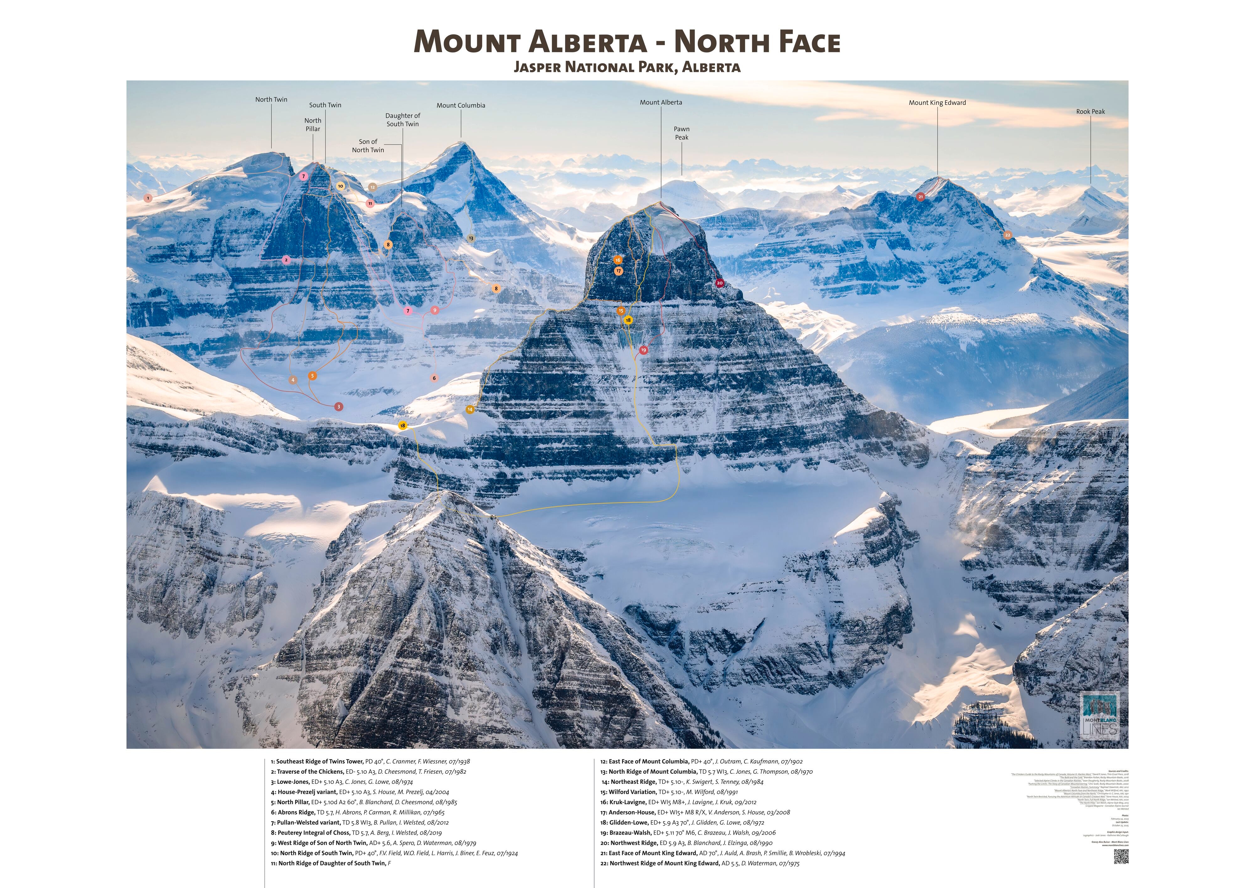 Triplette d’une des montagnes les plus sauvages des Rocheuses Canadiennes, et la montagne majeure à la voie normale la plus difficile de tout le massif: le Mont Alberta.