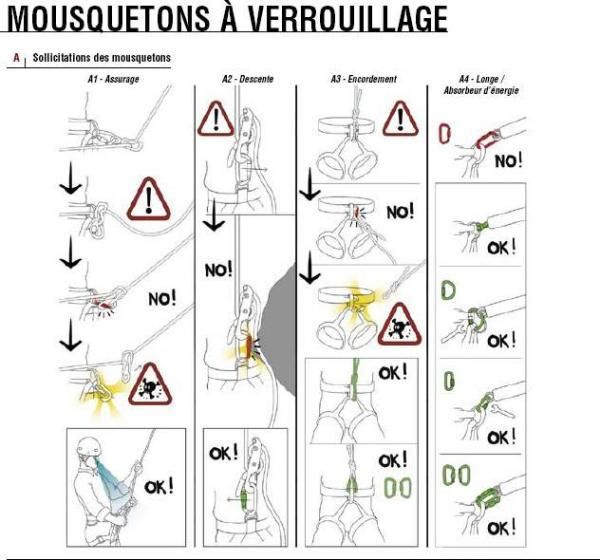 Avec le mousqueton au pontet on voit qu’il subsiste quelques risques comme le montre les dessins de Petzl.
