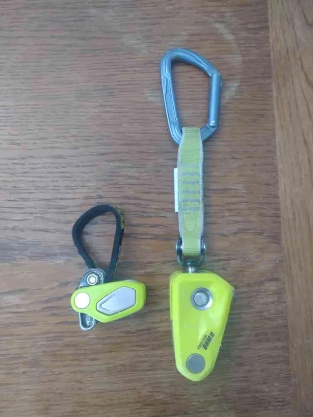 J’ai aussi eu l’occasion de tester en grande voie. C’était pas une GV très dure donc j’ai pas pris de plomb dessus pendant la grimpe, mais j’ai testé avec mon amie et ça pince bien la corde quand je me met en tension dessus. En second, c’était assez facile pour elle de le récupérer. Pour pas s’embeter à l’ouvrir ou quoi, elle le gardait sur la corde et le clipait à son pontet pendant la grimpe. Pas de gène et c’est plus simple de l’ouvrir et tout quand tu es vaché au relai.