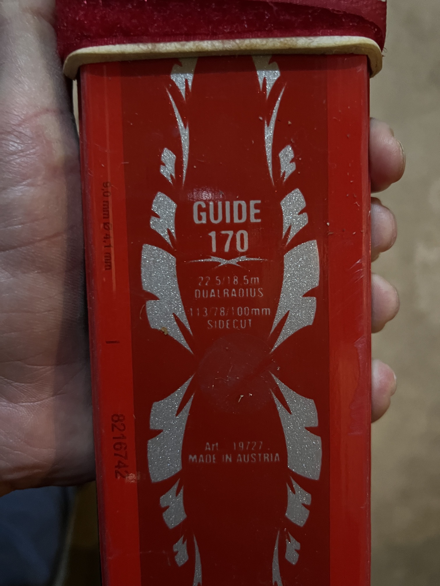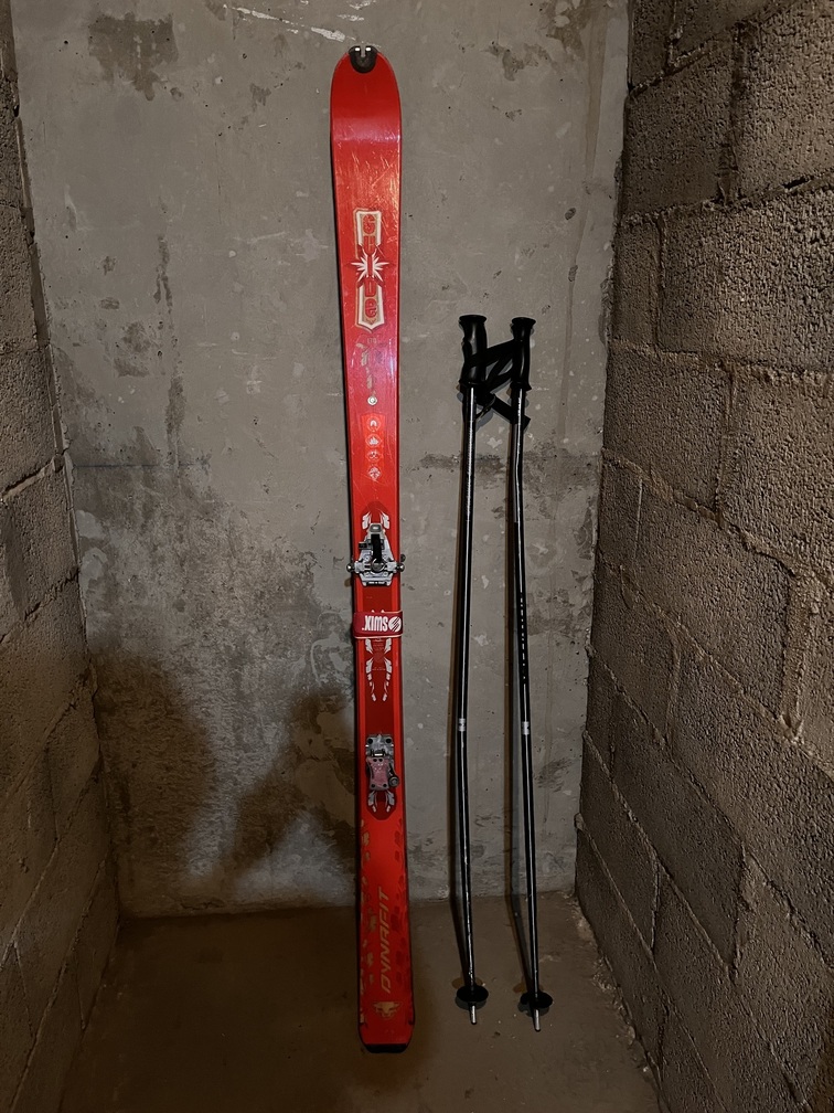 - Skis de randonnée avec fixations montées Dynafit Guide 170 , taille indiquée 22.5 / 18.5 M , fabriquées en Autriche ;