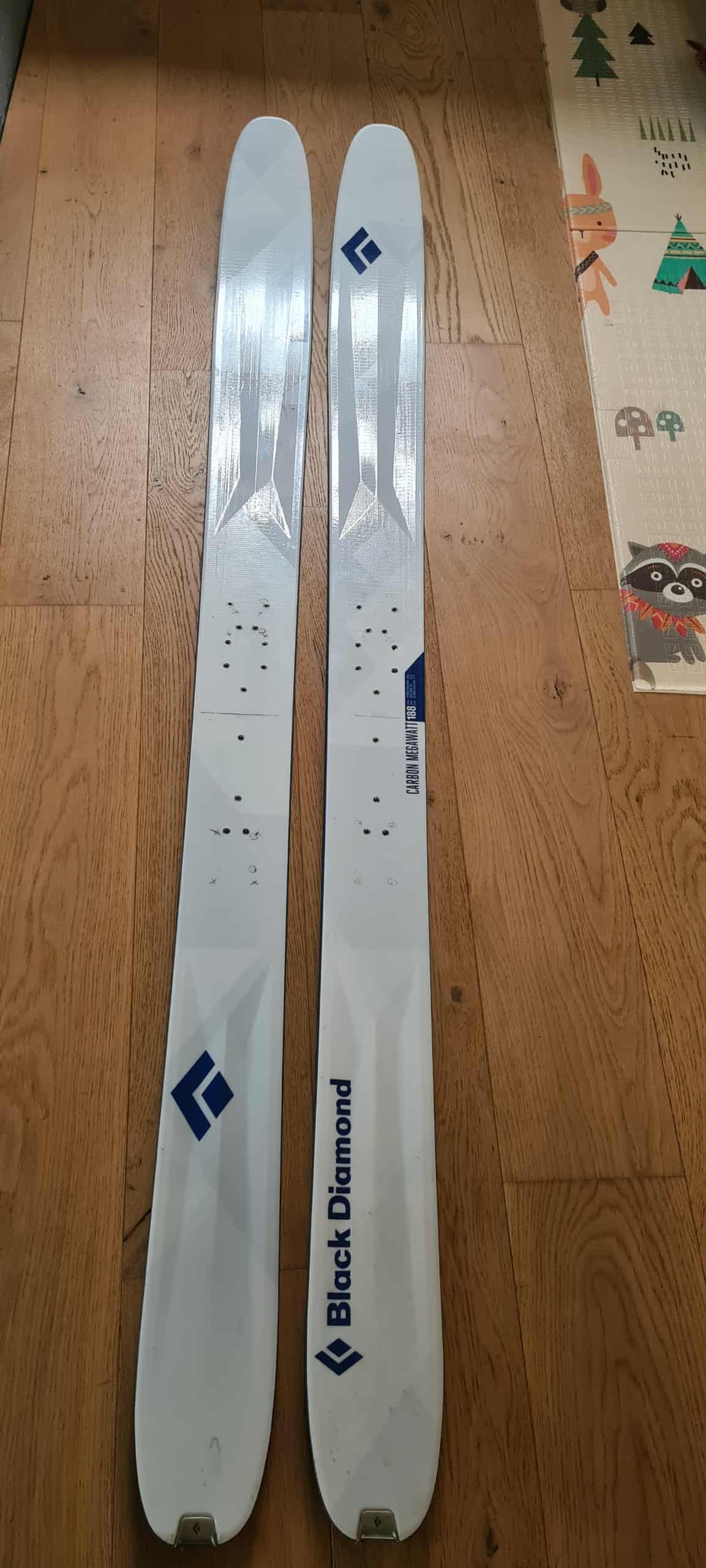 ski percés pour une fixation de telemark meidjo, inserts en place par un shop pro telemark (la fixation peut s’enlever ou être mise à loisir)
