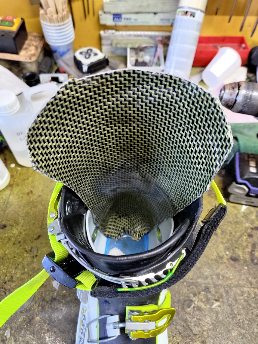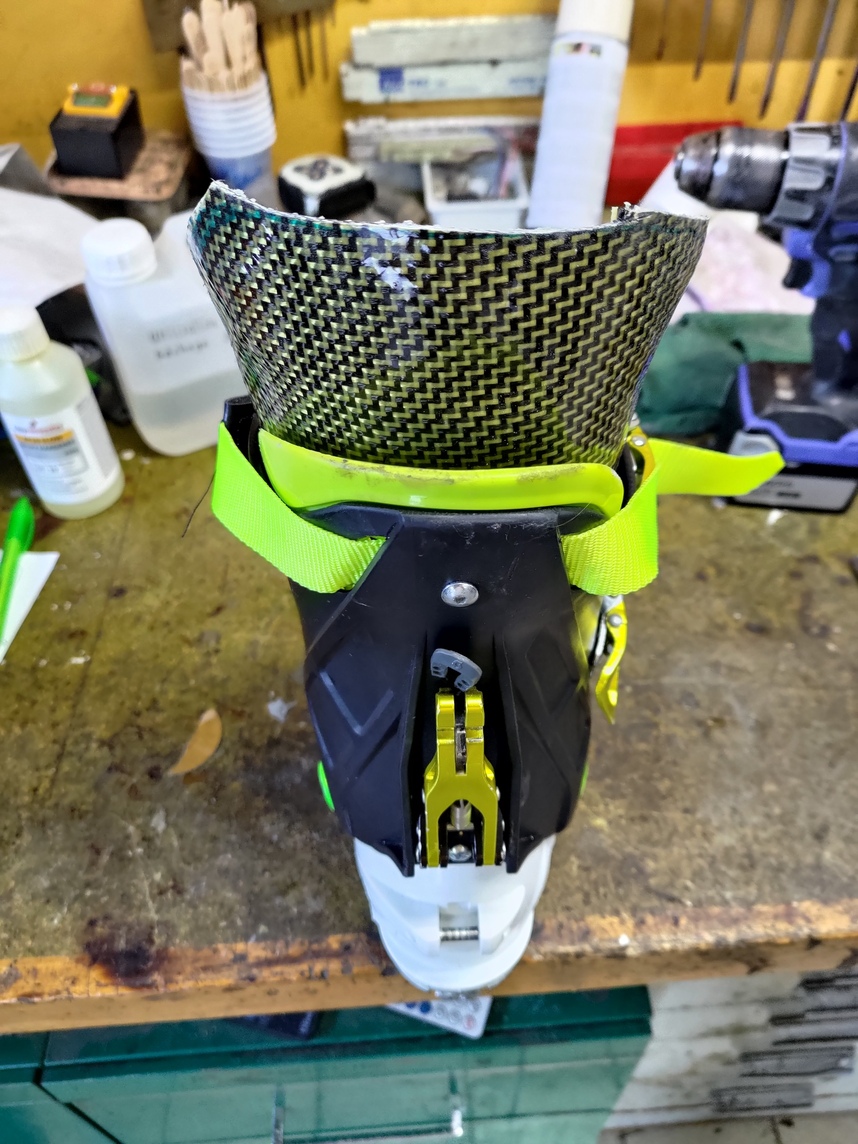 J’ai pu montrer cette fabrication à quelques bootfitter, ils ont dit que c’était bien joli. Et le choix de couleur est vraiment parfait vu le coloris de la Scott.