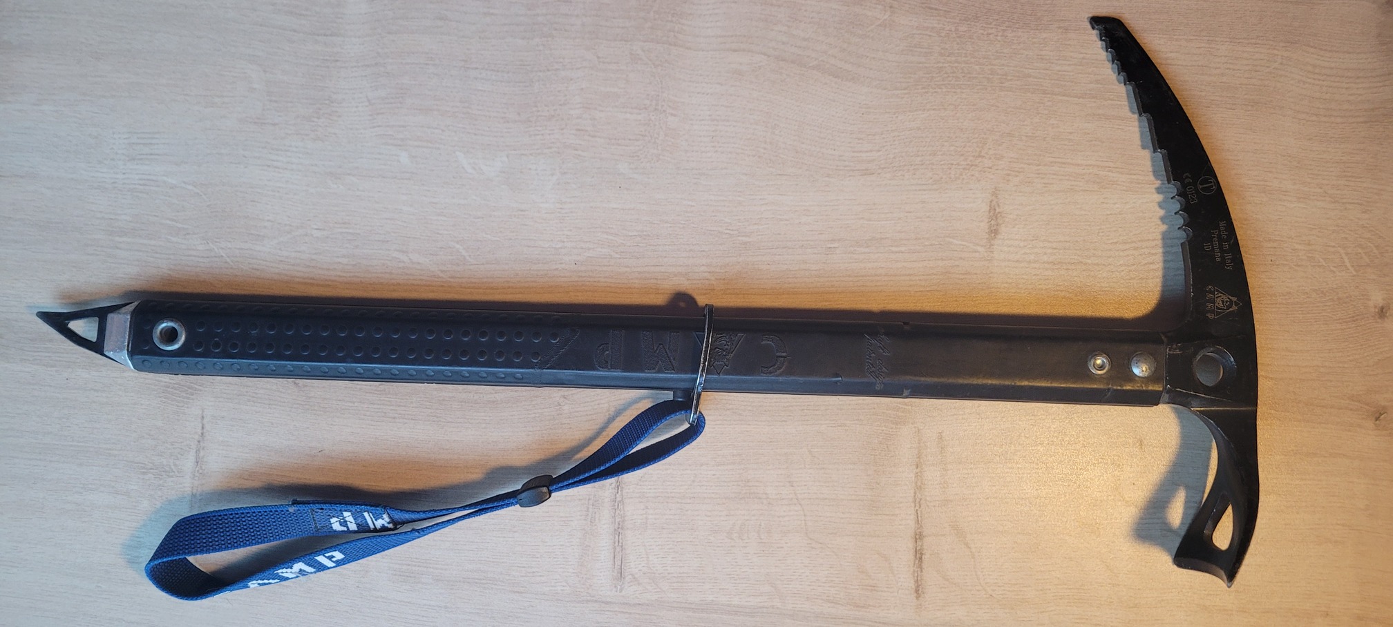 Vends piolet panne Camp droit, 55 cm, acier bien costaud, très peu servi (arrêt de l’activité alpinisme). Avec sangle dragonne coulissante utilisable en position piolet canne ou piolet traction. Manche intégralement gainé anti-glisse. 50€