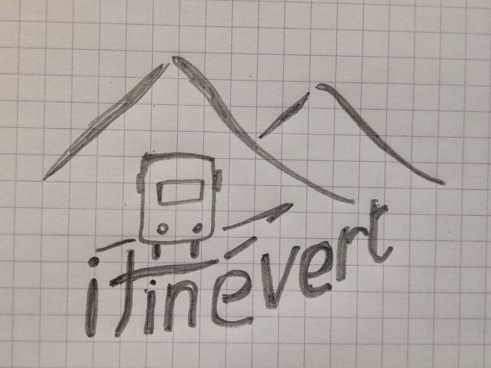 J’ai exprimé il y a un certain nombre de jours que je trouvais les propositions de Jok3r aplaties ou écrasées. J’ai pris mon crayon hier soir pour voir ce que ça donnait en mettant un peu plus en avant le bus et avec les montagnes qui se détachent plus. Donc voici, ça donne un peu de mouvement. Je recopie la police uniforme de la solution A, mais avec un vrai v. Couleurs dito ce qui est déjà retenu, pt-être avec un contour noir sur le bus ? Les traits des sommets sont un peu plus fins que le logo c2c et ne se croisent pas, mais c’est du détail.